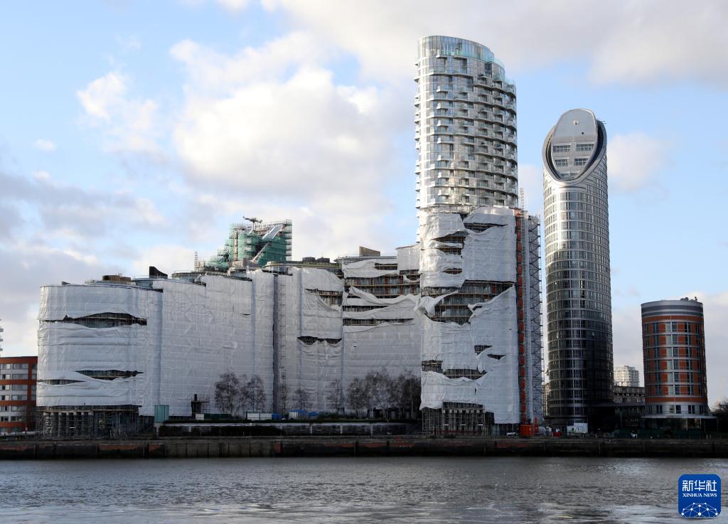 这是2月18日在英国伦敦拍摄的风暴中泰晤士河边的建筑。