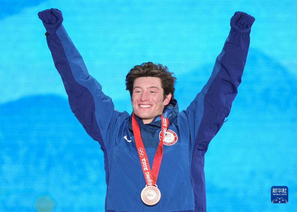2月19日,季军美国选手亚历克斯·费雷拉在奖牌颁发仪式上。