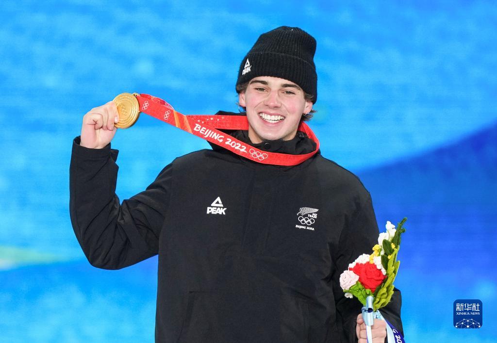 2月19日,冠军新西兰选手尼科·波蒂奥斯在奖牌颁发仪式上。