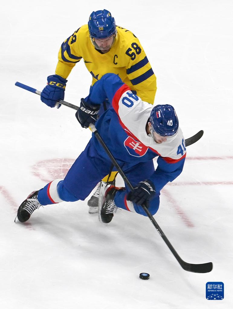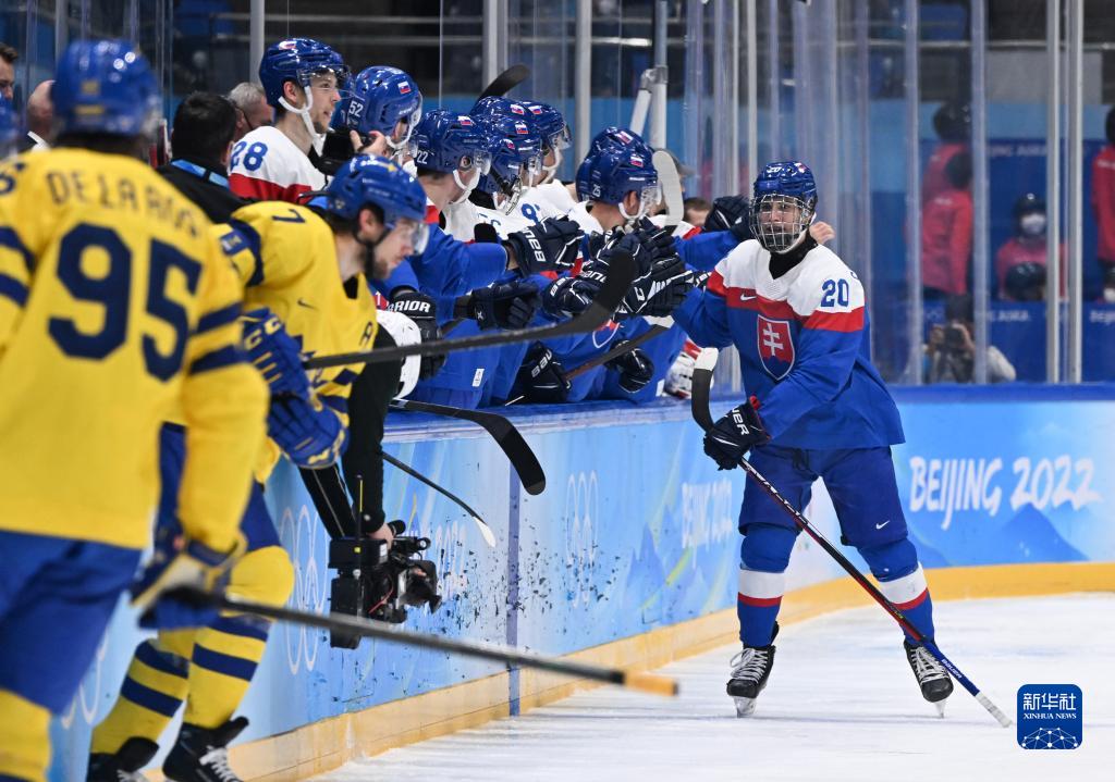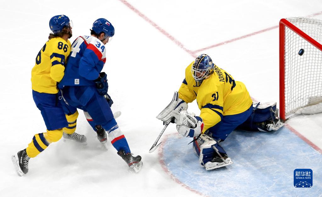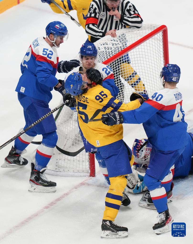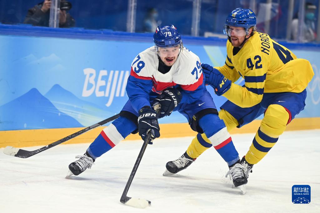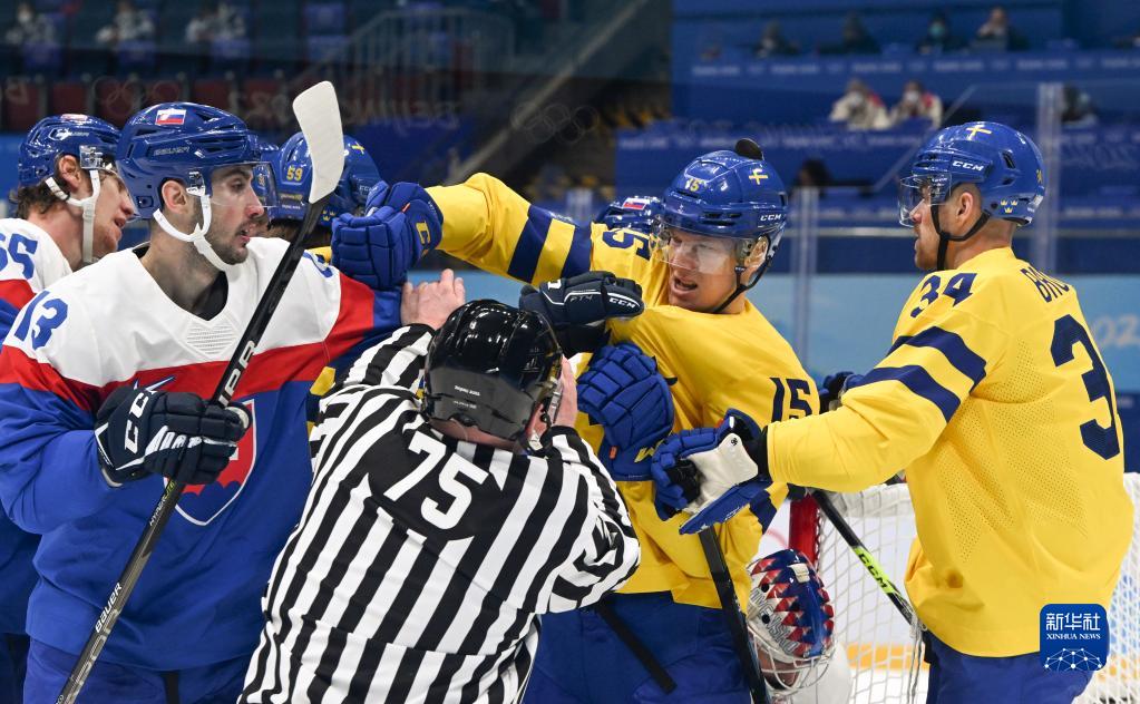 当日,在国家体育馆举行的北京2022年冬奥会男子冰球铜牌赛中,瑞典队对阵斯洛伐克队。