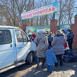 2月19日,难民抵达俄罗斯南部罗斯托夫州的一处临时安置点。
