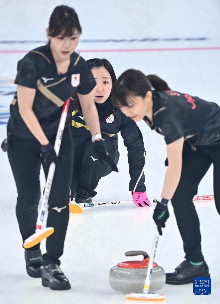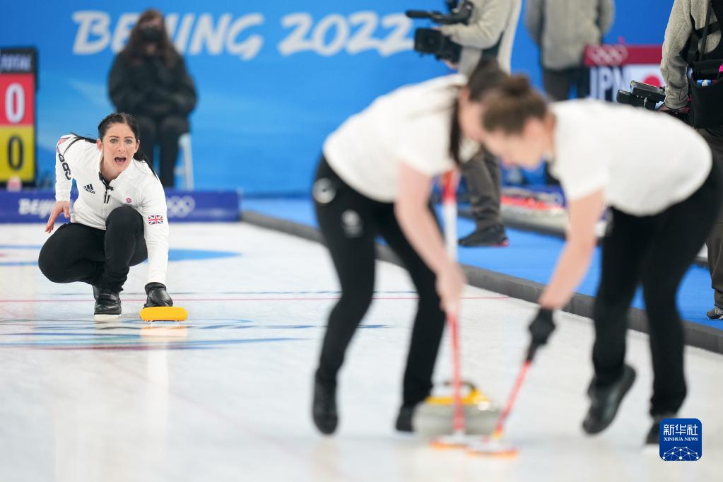 当日,在北京国家游泳中心“冰立方”举行的北京2022年冬奥会女子冰壶金牌赛中,日本队对阵英国队。