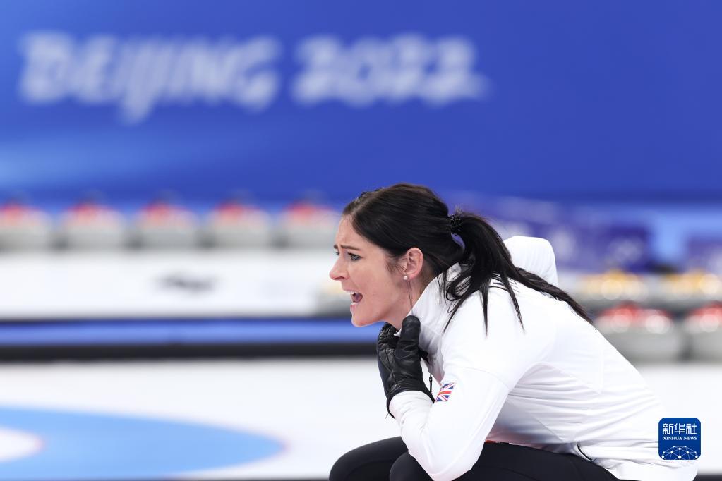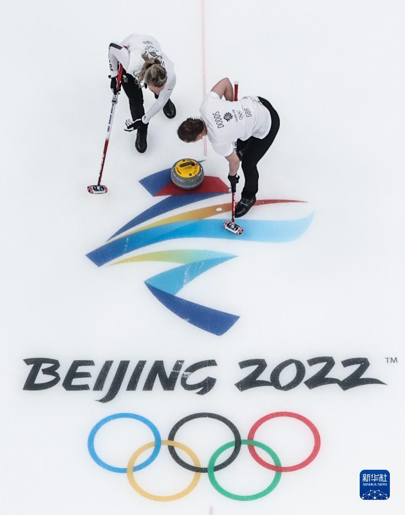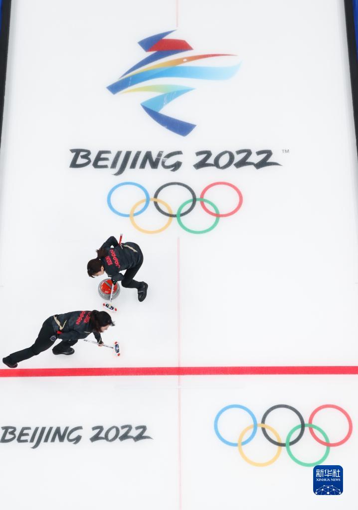 当日,在北京国家游泳中心“冰立方”举行的北京2022年冬奥会女子冰壶金牌赛中,日本队对阵英国队。