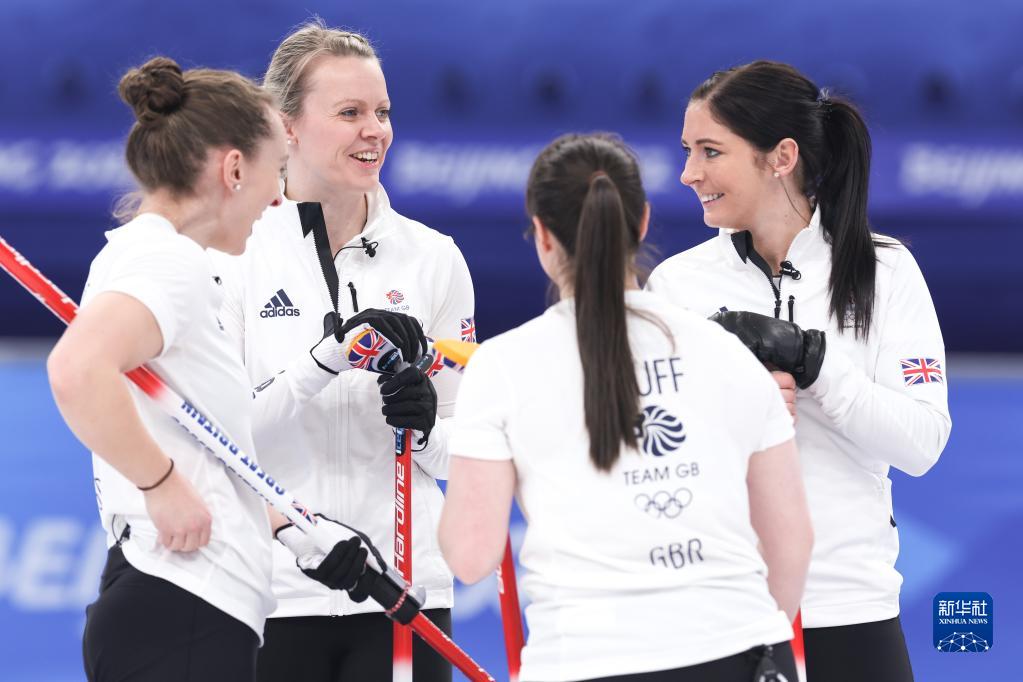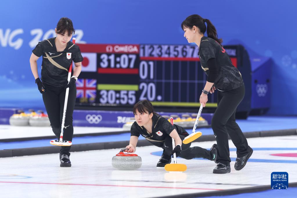 当日,在北京国家游泳中心“冰立方”举行的北京2022年冬奥会女子冰壶金牌赛中,日本队对阵英国队。