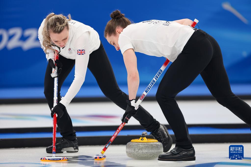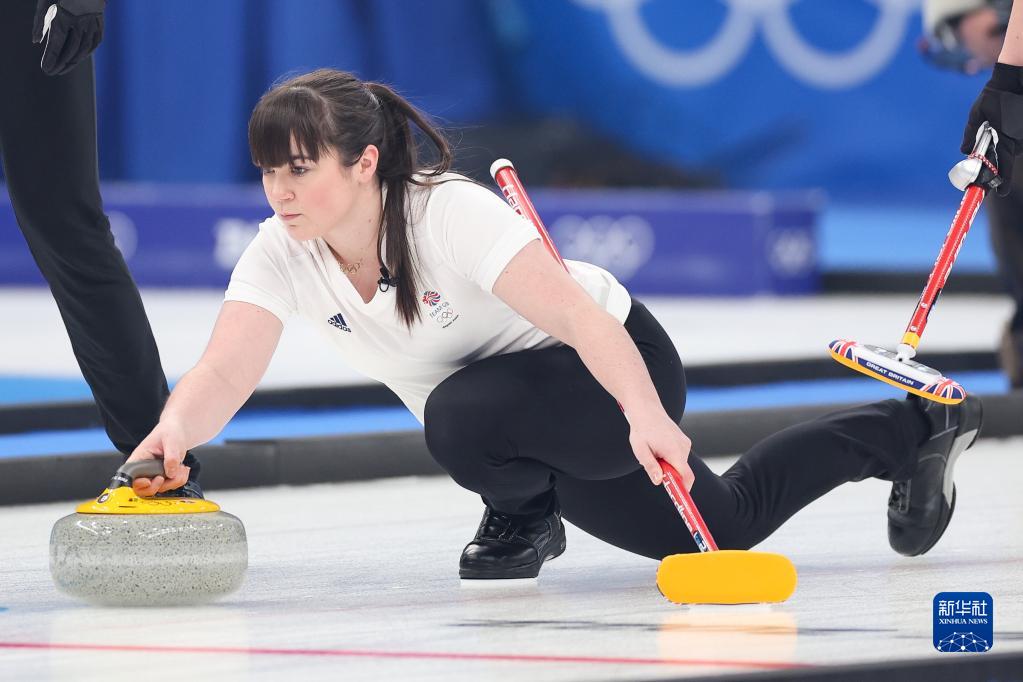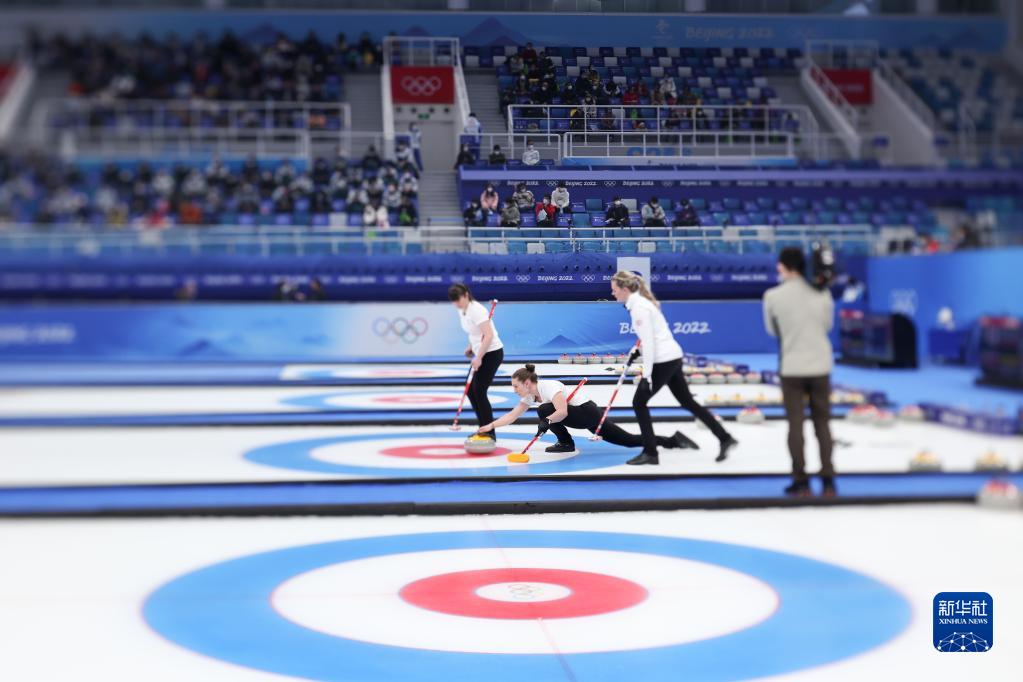 当日,在北京国家游泳中心“冰立方”举行的北京2022年冬奥会女子冰壶金牌赛中,日本队对阵英国队。