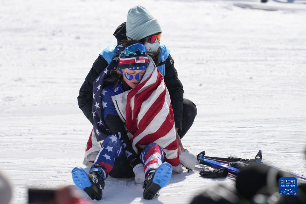 2月20日,获得亚军的美国选手杰茜·迪金斯在比赛后。