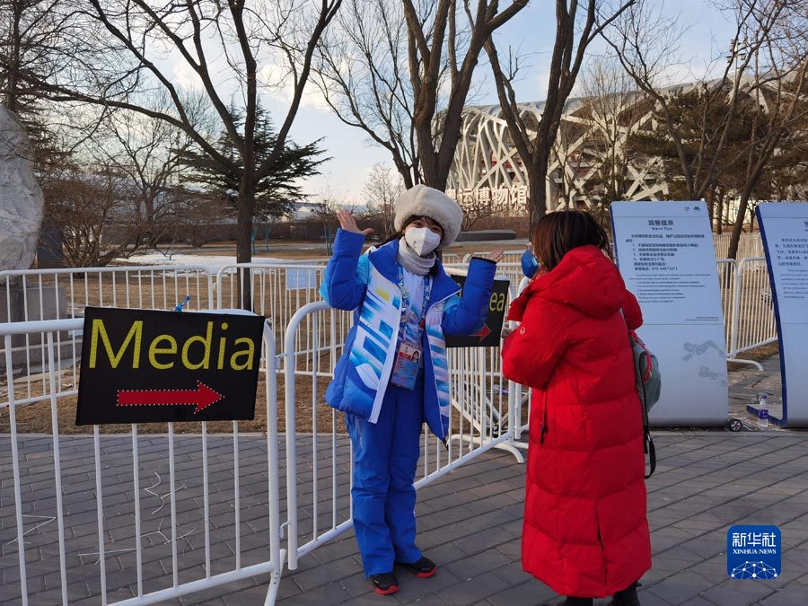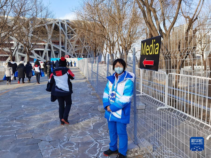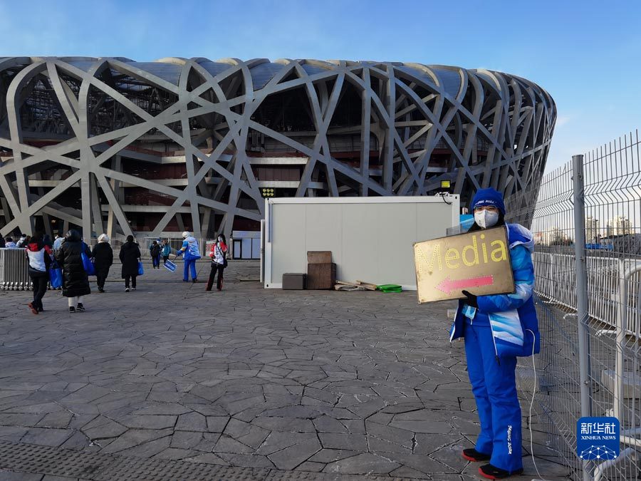 下午四点半,媒体记者已经开始进入鸟巢,志愿者热情引导。新华社记者岳冉冉 摄