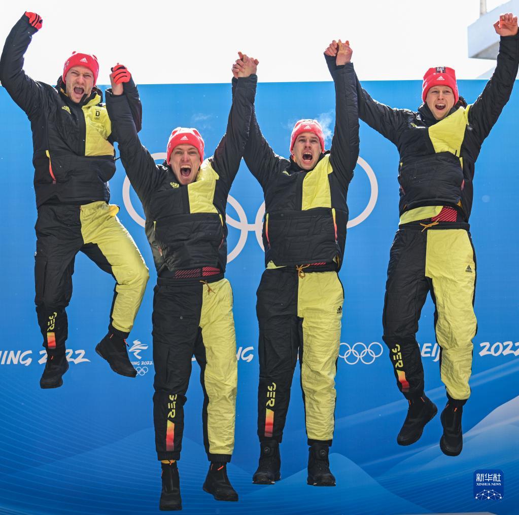 2月20日,获得冠军的德国选手弗朗西斯科·弗里德里希、托尔斯滕·马吉斯、坎迪·鲍尔、亚历山大·许勒尔在颁奖仪式上。