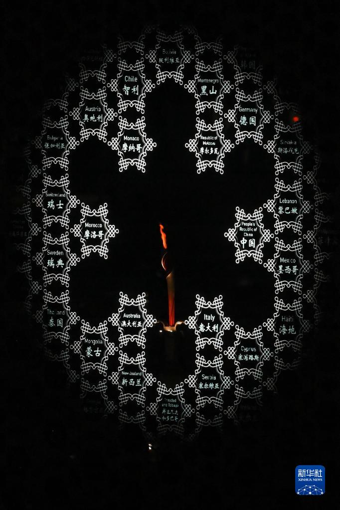 2月20日,这是北京2022年冬奥会闭幕式现场正在熄灭的奥林匹克主火炬。
