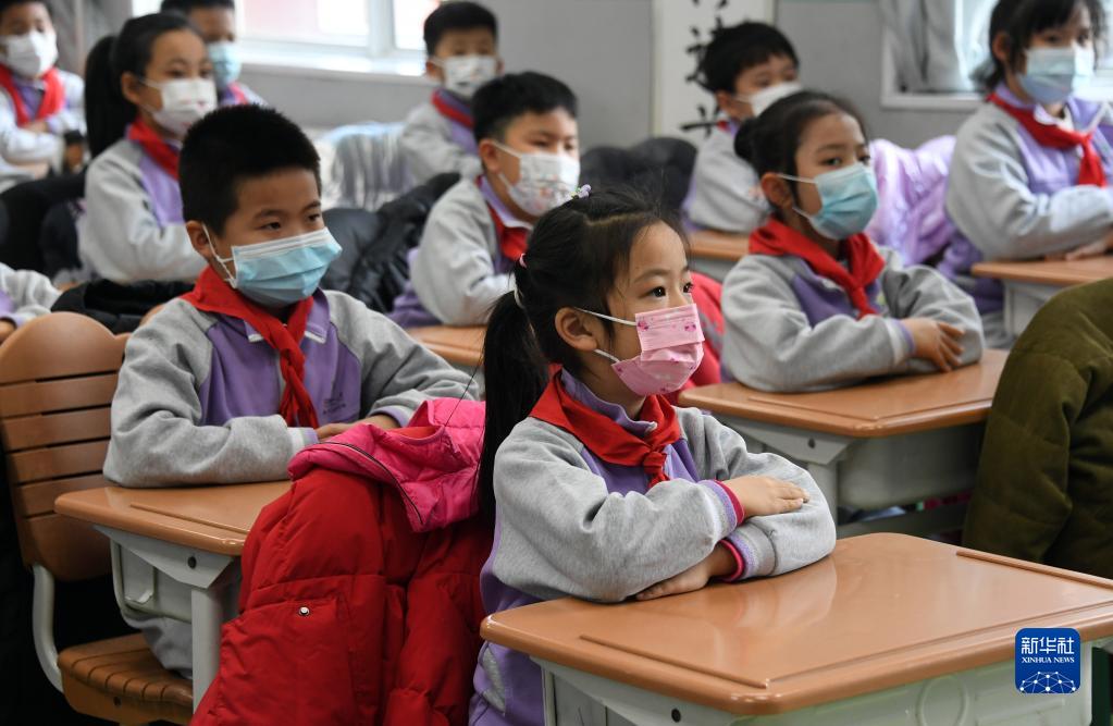 2月21日,在北京市海淀区双榆树第一小学,二年级(2)班的学生在上数学课。
