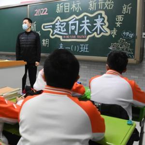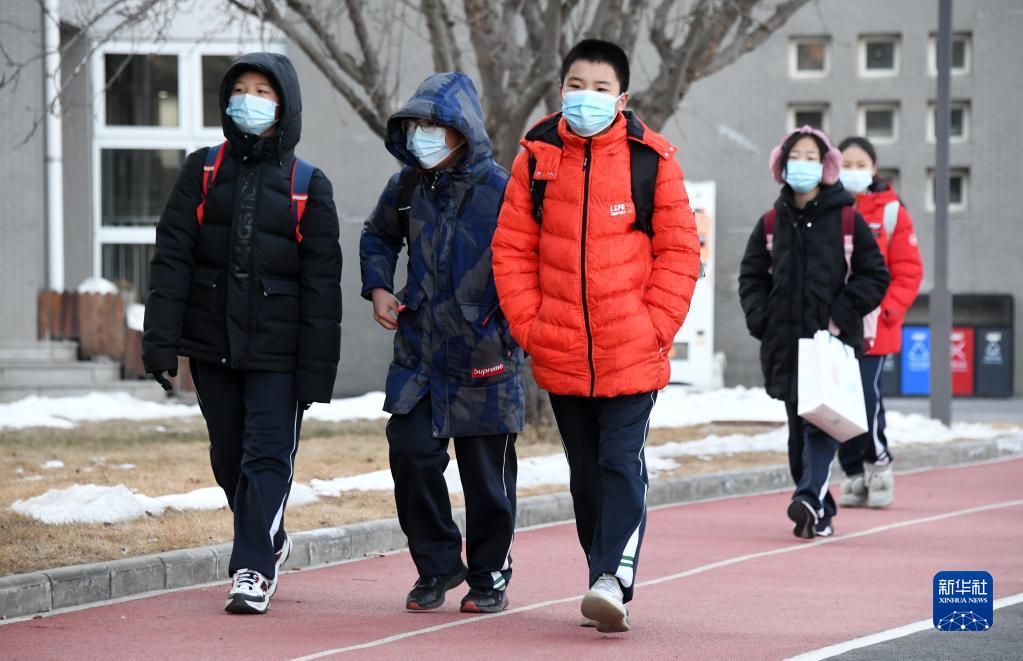 2月21日,学生们走在中国农业大学附属中学校园里。
