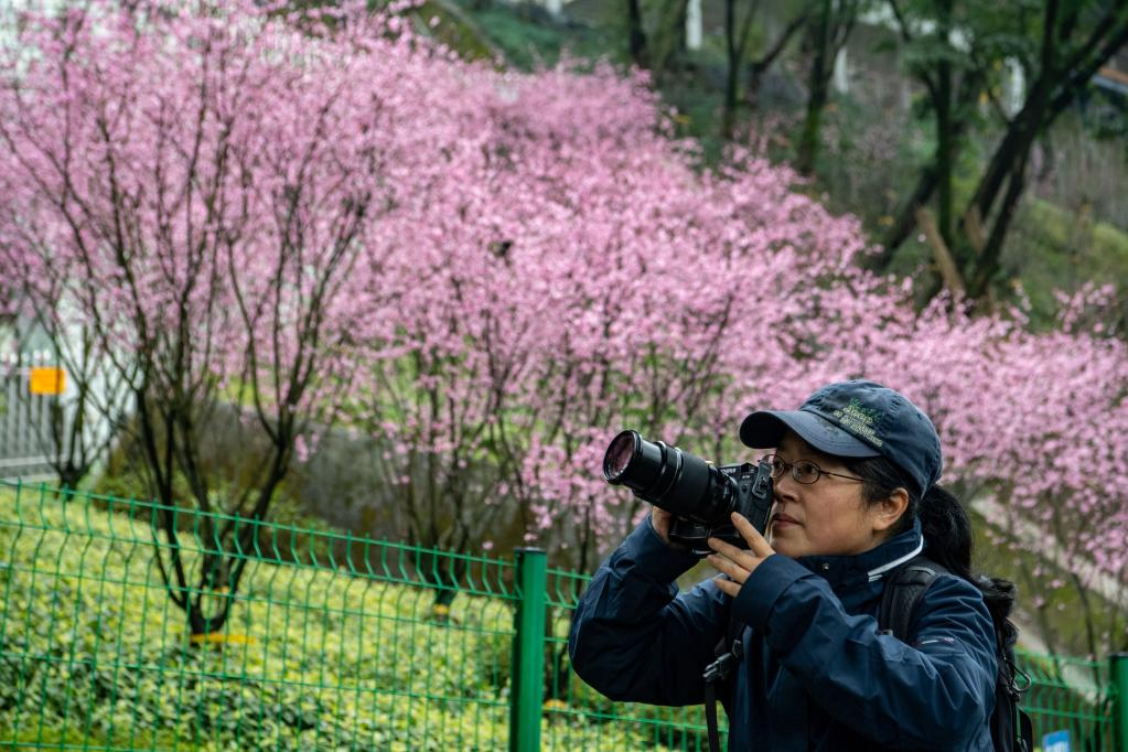 游客陈力也是其中一员。“这是我第二次来到佛图关公园,今年我特意带着我新买的相机,来锻炼自己的拍摄能力。今年的花比去年开得更茂盛,公园里的设施也有所改善,总体感受很不错。”
