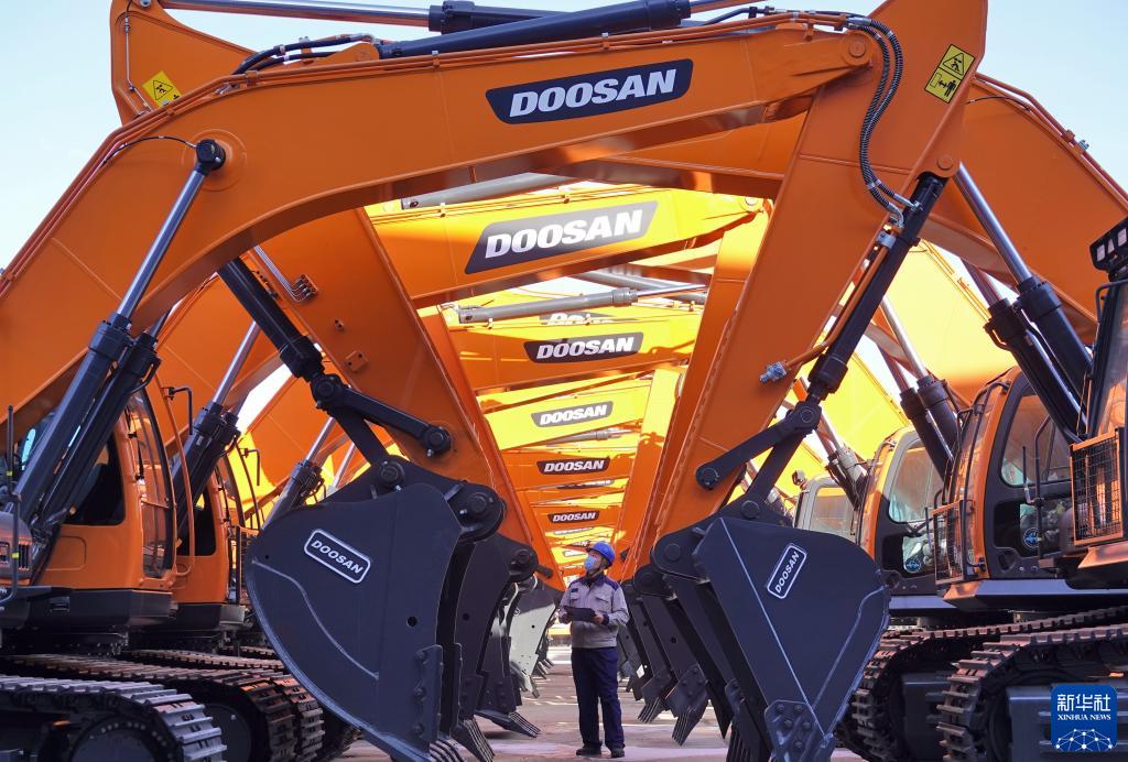 1月17日,在山东烟台开发区一家工程机械有限公司,工作人员对出厂车辆进行检查。新华社发(唐克 摄)