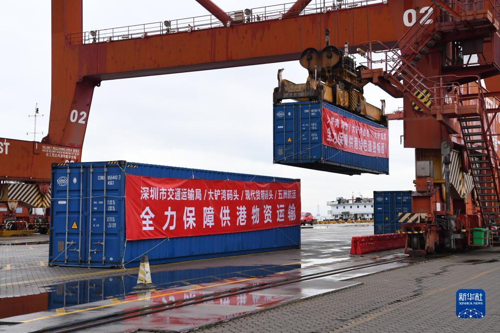 新华社深圳2月21日电(记者王丰、李思佳)21日22时,随着满载52标箱生活物资的驳船从深圳妈湾码头驶向香港,深圳各主要码头全面开通供港物资水路运输快速通道,全力保障香港生活物资供应。