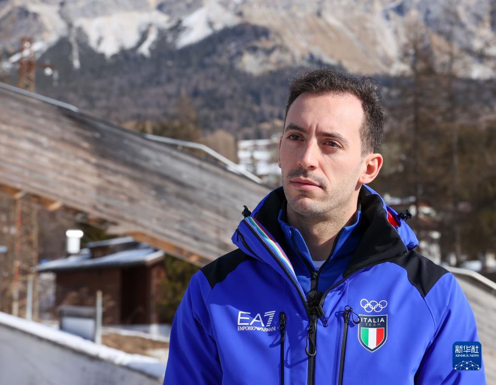 2月18日,意大利钢架雪车冬奥选手马蒂亚·加斯帕里接受新华社记者采访。