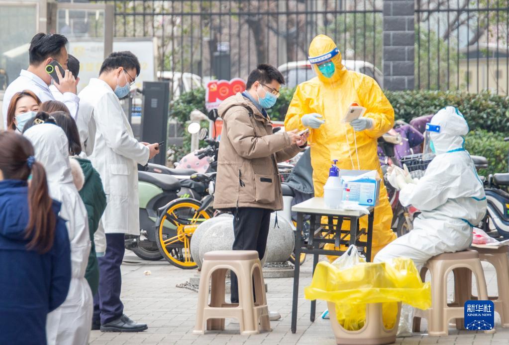2月22日,市民在武汉市圆梦家园社区核酸检测点进行核酸检测。