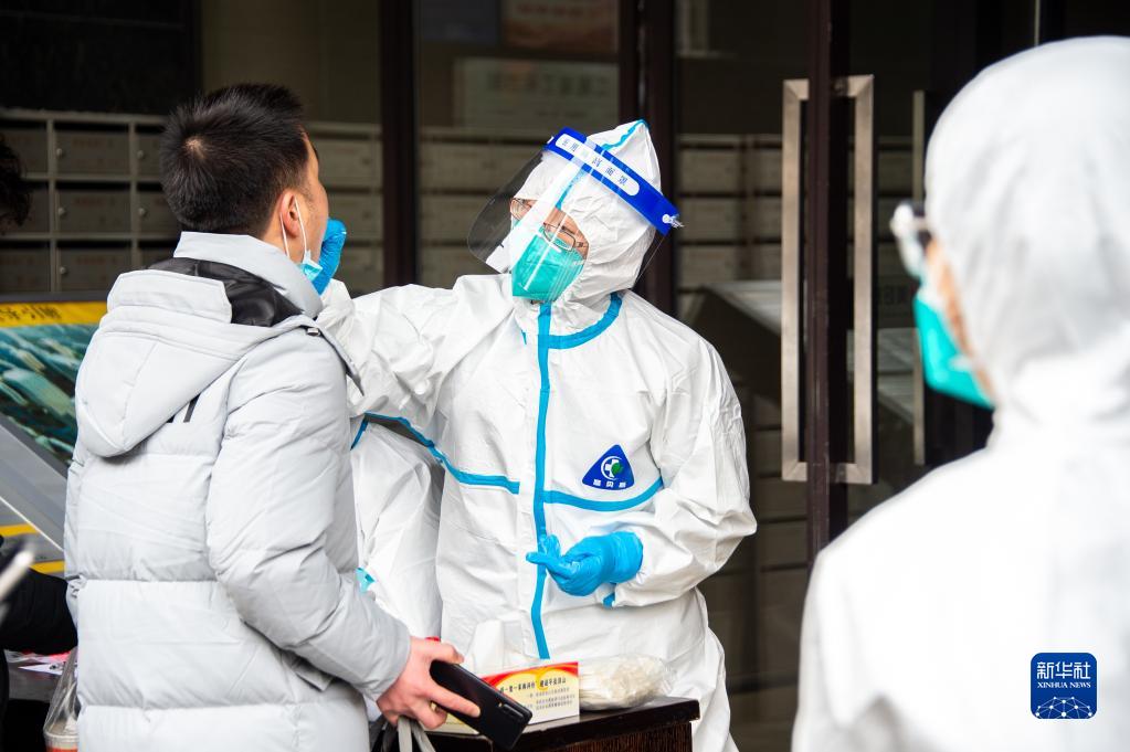2月22日,市民在武汉市圆梦家园社区核酸检测点进行核酸检测。