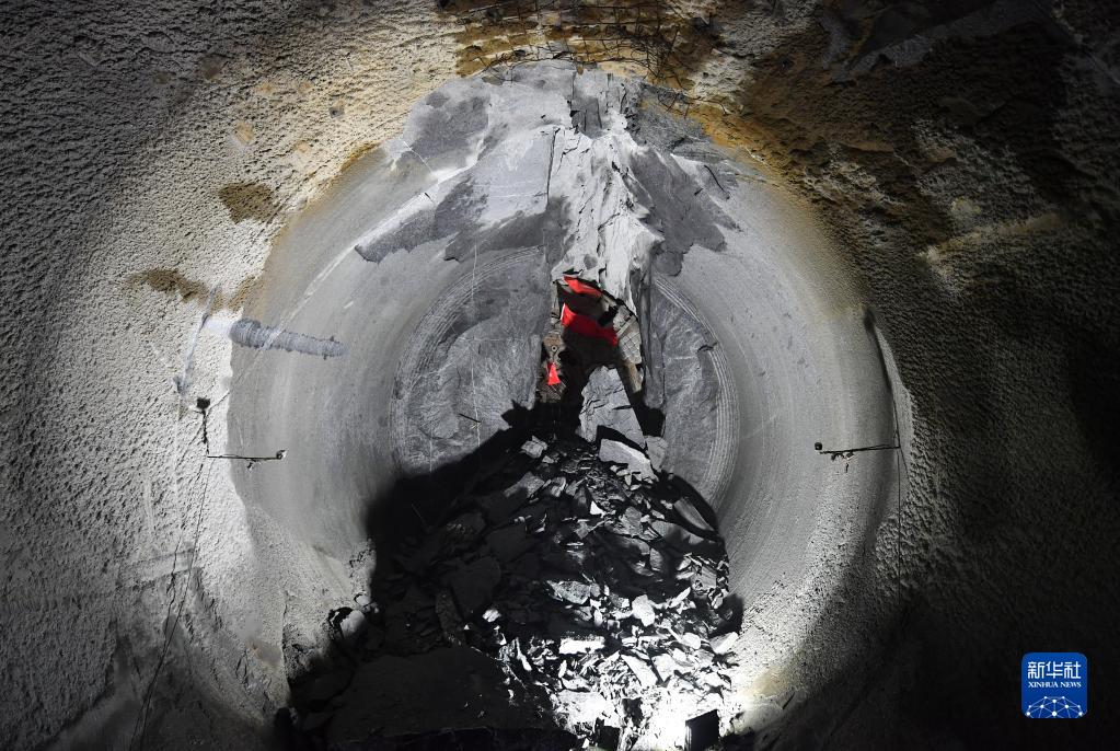 11时17分,在陕西省宁陕县境内深埋1800多米的隧洞中,随着一台隧道硬岩掘进机旋转的刀盘破岩壁而出,总长为98.3千米的输水隧洞实现贯通,这也是人类历史上首次从底部横穿中国南北方分界线之一的秦岭。