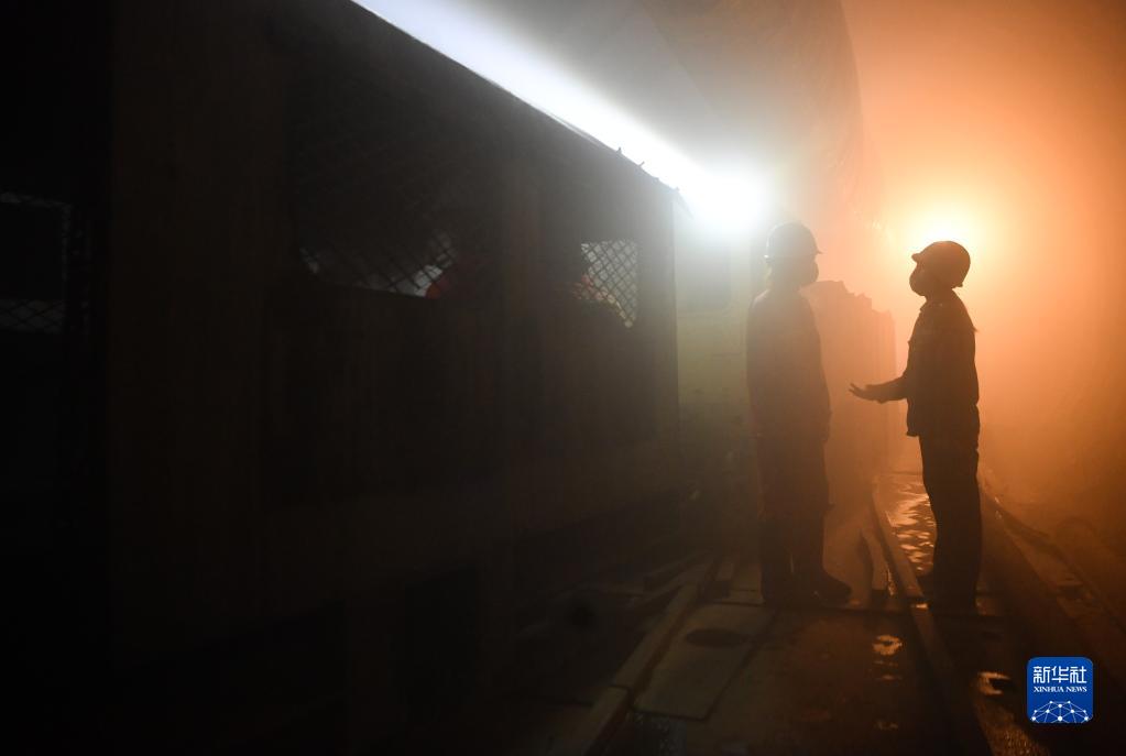 2月22日,工作人员在陕西引汉济渭工程秦岭输水隧洞施工现场交流。新华社记者 张博文 摄