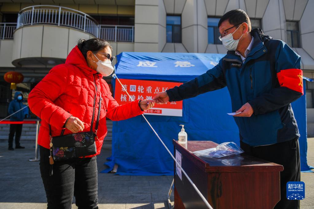 2月22日9时起,呼和浩特市启动第四轮核酸检测工作。参检人员在社区工作人员安排下,到指定采集点有序接受核酸采样。截至2月21日24时,内蒙古自治区现有本土确诊病例195例,其中呼和浩特市179例。新华社记者 刘磊 摄
