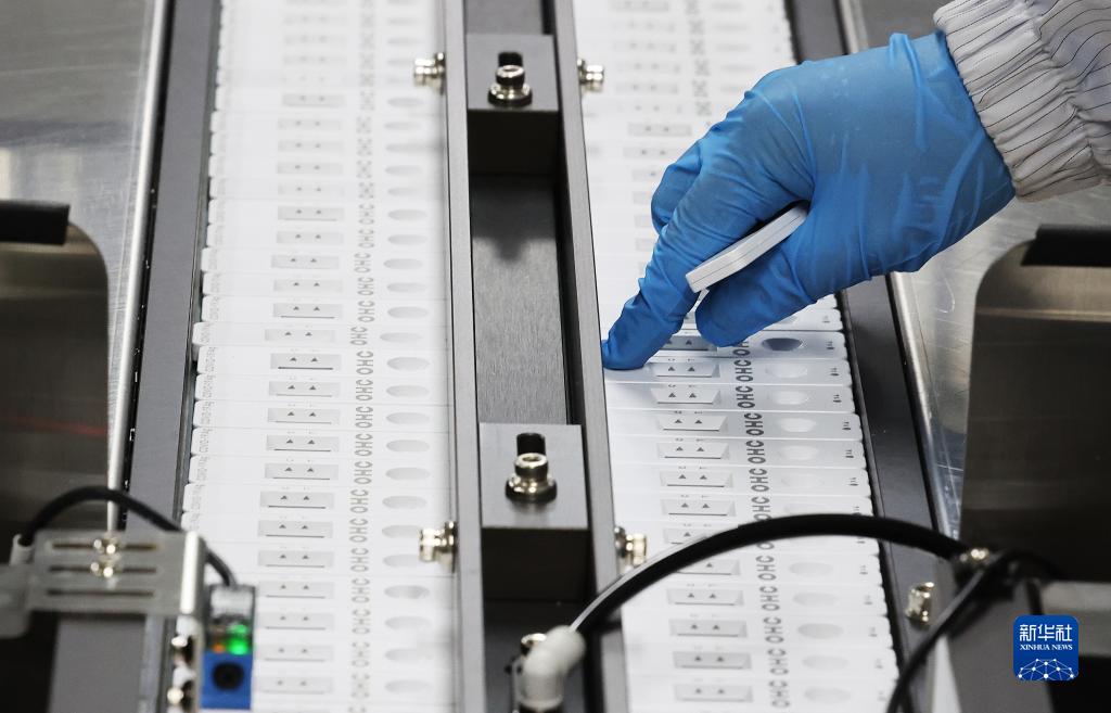 这是2月23日在韩国京畿道拍摄的新冠病毒快速检测设备生产线。
