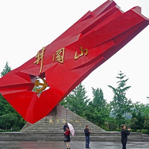游客在江西省井冈山市参观“井冈红旗”雕塑(2021年4月27日摄)。新华社记者 万象 摄