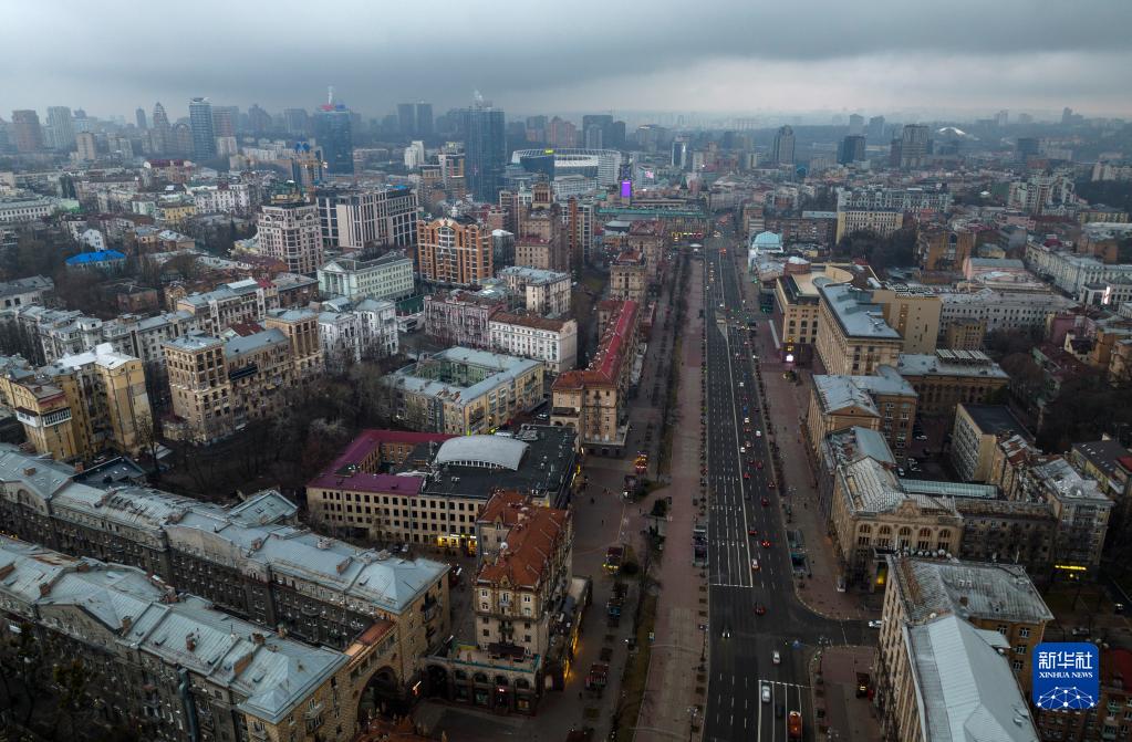 这是2月24日拍摄的乌克兰基辅的街景。新华社/美联
