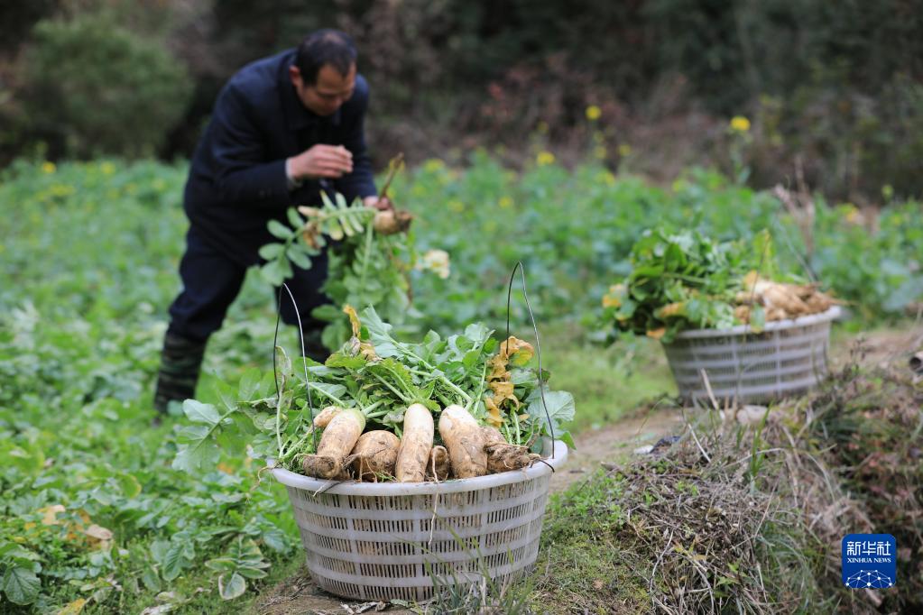 2月24日,贵州省从江县刚边乡三联村村民在田间采收萝卜。