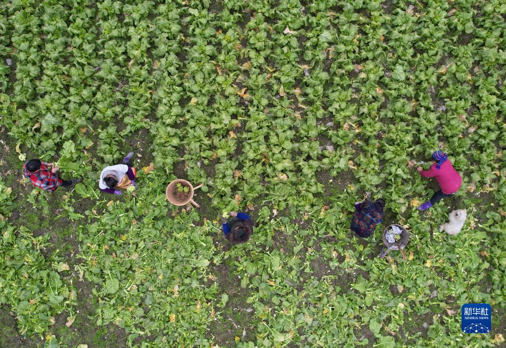 2月24日,在重庆市酉阳土家族苗族自治县涂市镇涂家寨村,村民采收青菜头。