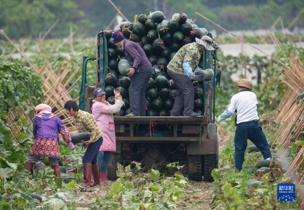 2月24日,海南省琼海市潭门镇的农民在装运冬瓜。