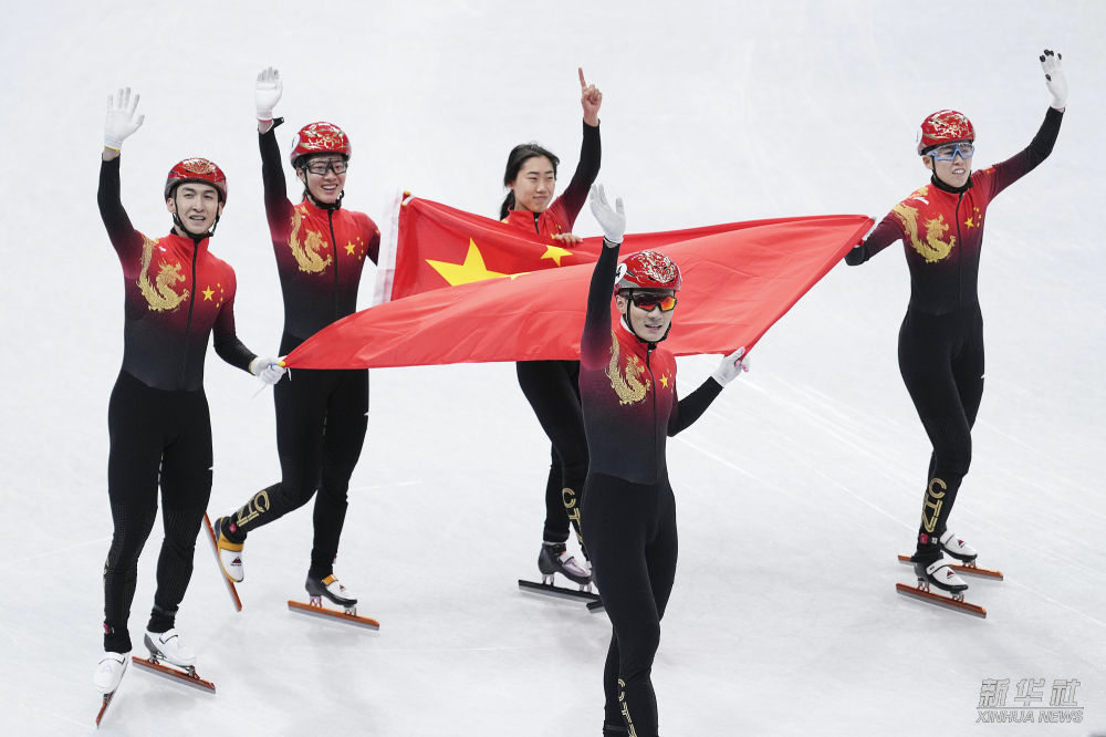 2月5日,在首都体育馆举行的北京2022年冬奥会短道速滑项目混合团体接力决赛中,由范可欣、任子威、曲春雨、武大靖、张雨婷组成的中国队夺得冠军。