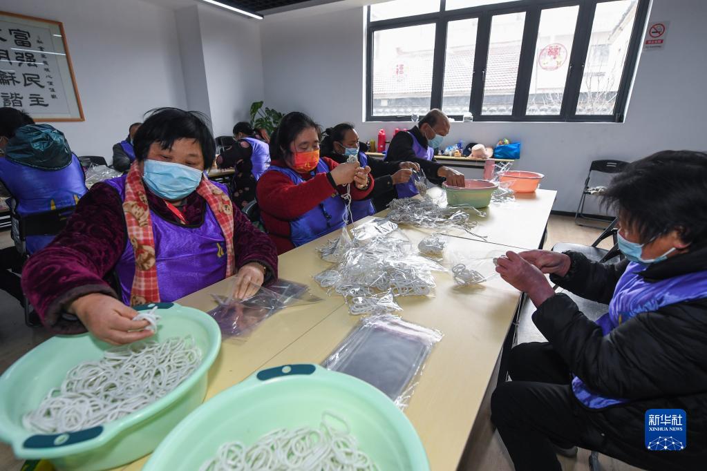 2月22日,在湖州市织里镇港西村残疾人之家,来自周边的残疾人(包括精神残疾、智力残疾和肢体残疾)正在打包配件。完成工作后,他们可以获得相应报酬和补贴。