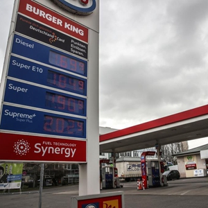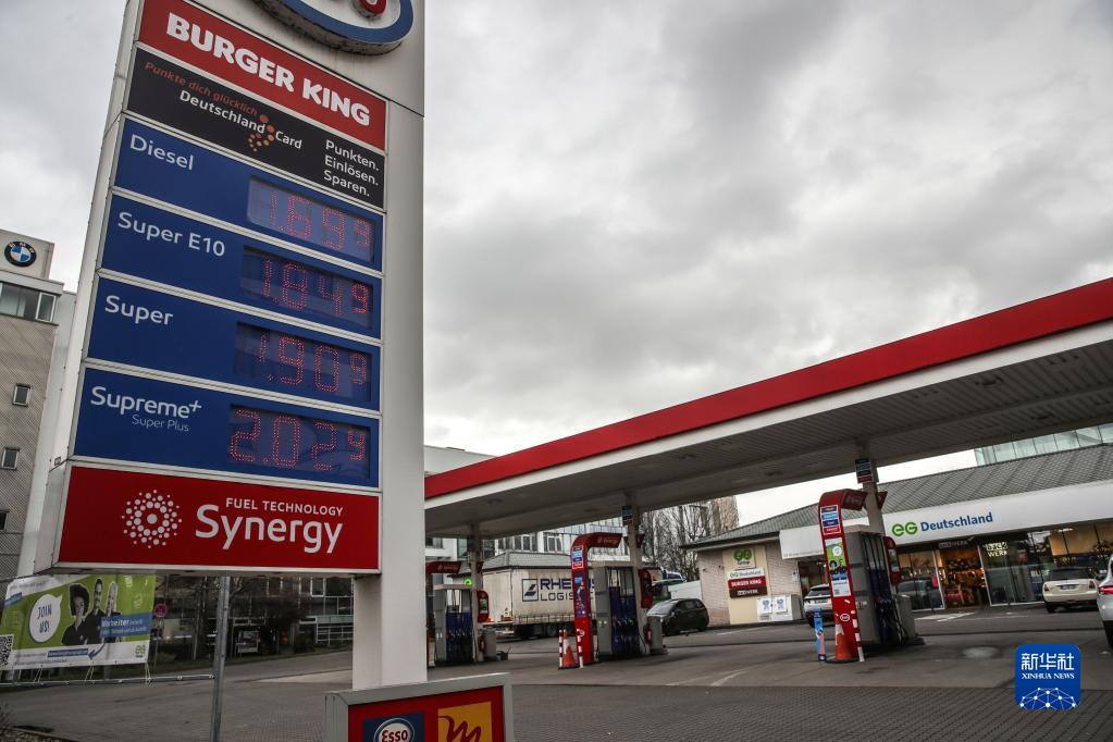 这是2月25日在德国法兰克福拍摄的一家加油站屏幕上显示的油品价格。新华社发(阿曼多·巴巴尼摄)