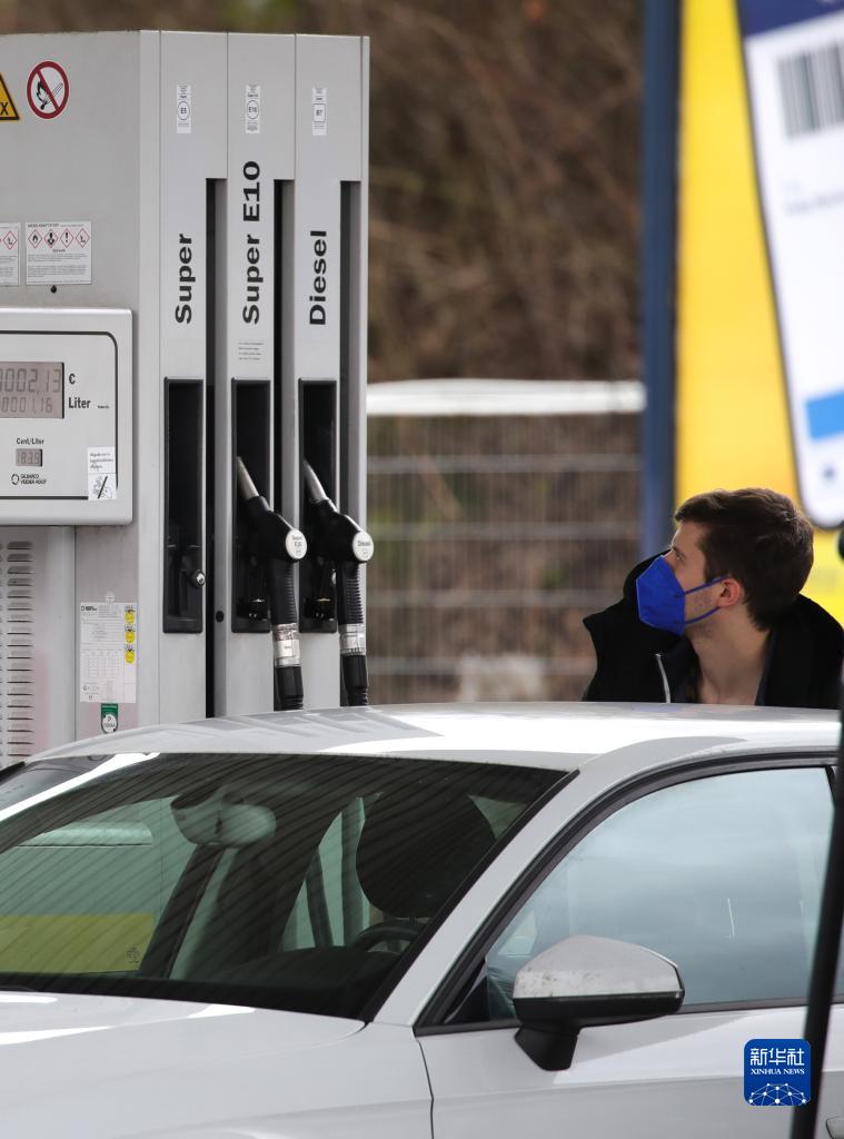 2月25日,在德国法兰克福,一名男子在加油站为汽车加油。新华社发(阿曼多·巴巴尼摄)