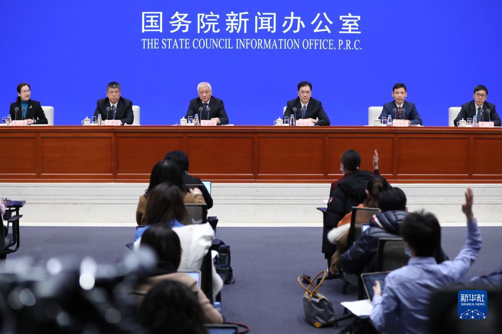 2月25日,国务院新闻办公室在北京举行新闻发布会,请科学技术部部长王志刚、科技部副部长邵新宇、科技部副秘书长贺德方、科技部社会发展科技司司长祝学华、科技部国际合作司司长戴钢介绍科技创新有关进展情况,并答记者问。新华社记者 金立旺 摄