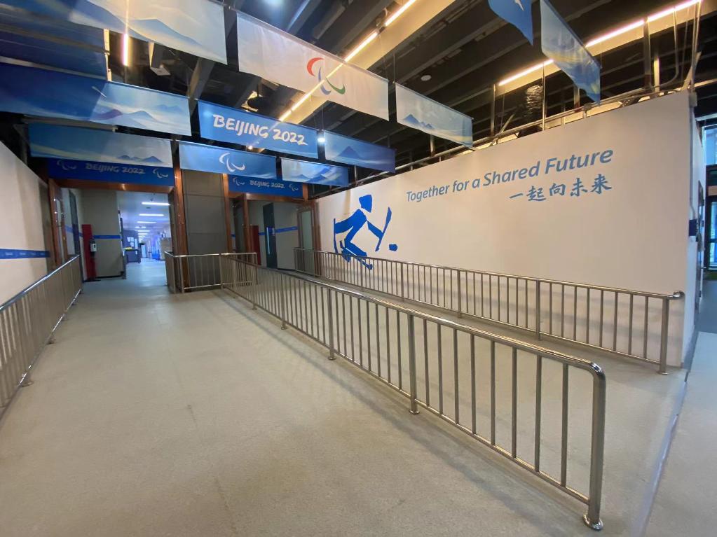 记者在25日的探访中看到,“冰之帆”内除了吉祥物、会徽、体育图标等正在更替为冬残奥的形象景观之外,各种无障碍设施细节满满,彰显人文关怀。