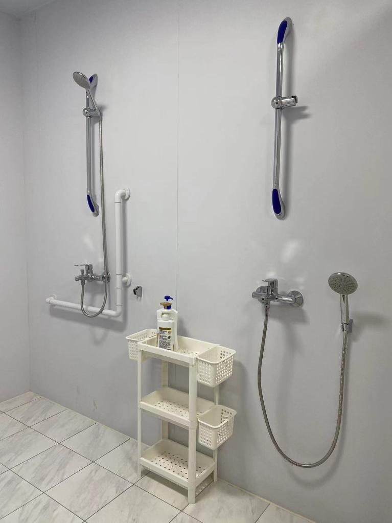 此外,在其他残奥运动员活动的区域,不少设施可以说是“量身定制”。比如专门辟出一个轮椅假肢维修站,以备不时之需;在运动员热身区,将脚蹬自行车换为手摇健身器;在运动员更衣室的淋浴间,新增一个花洒底座,让运动员触手可及。