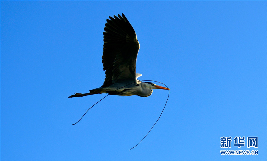 春来苍鹭争暖树 翩跹起舞忙筑巢