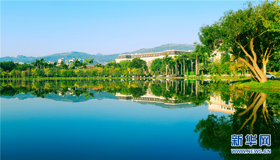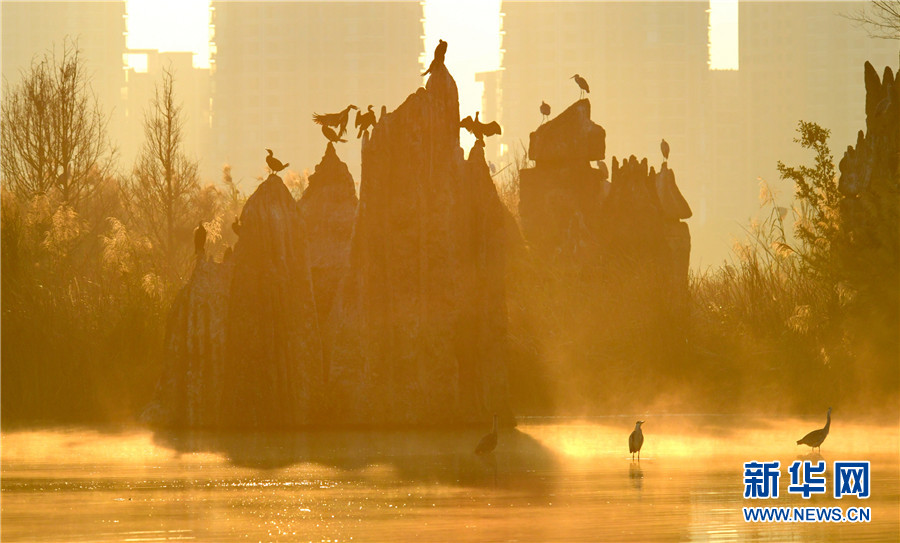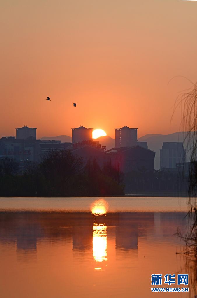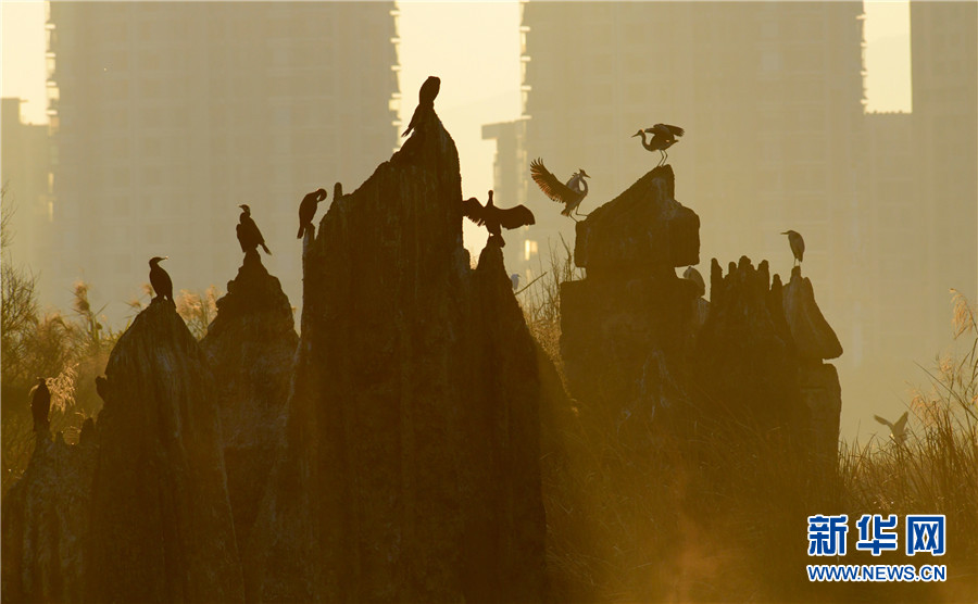 近日,云南省弥勒市湖泉生态园内,苍鹭与白鹭翩跹起舞,嘴衔树枝忙筑巢。新华网发(普佳勇摄影报道)