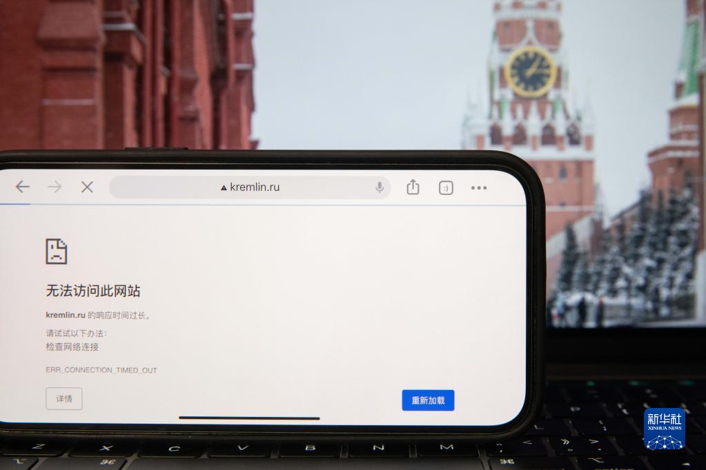 2月26日在俄罗斯首都莫斯科拍摄的手机屏幕显示,俄总统网站出现网页无法打开的情况。新华社记者白雪骐摄