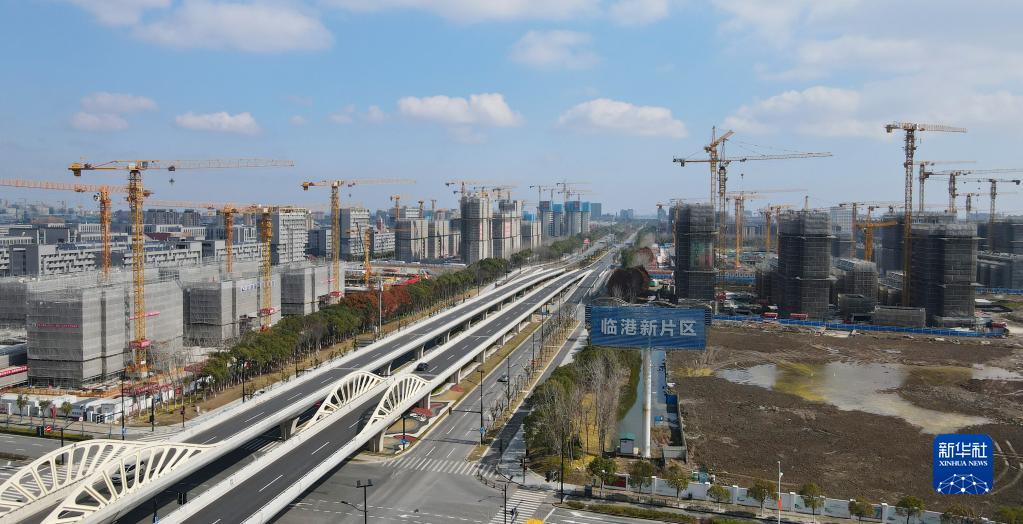 2月10日在中国(上海)自由贸易试验区临港新片区拍摄的住宅区建设现场(无人机照片)。新华社记者 方喆 摄