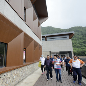 2021年7月15日,无障碍专家在北京延庆赛区冬奥村与施工方联合检查无障碍设施建设情况。新华社记者李欣摄