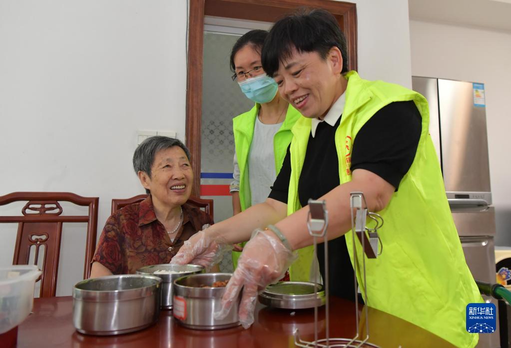 在江西省南昌市东湖区彭家桥街道文教路北社区,“幸福食堂”的义工在给社区内出行困难的老人提供送餐服务(2020年7月29日摄)。从2018年12月起,南昌市东湖区彭家桥街道在社区打造以党建引领、社区主导、爱心企业赞助的“幸福食堂”,专门为社区独居、孤寡及生活困难的老年人提供营养餐,以此进一步完善社区居家互助养老服务。新华社记者 彭昭之 摄
