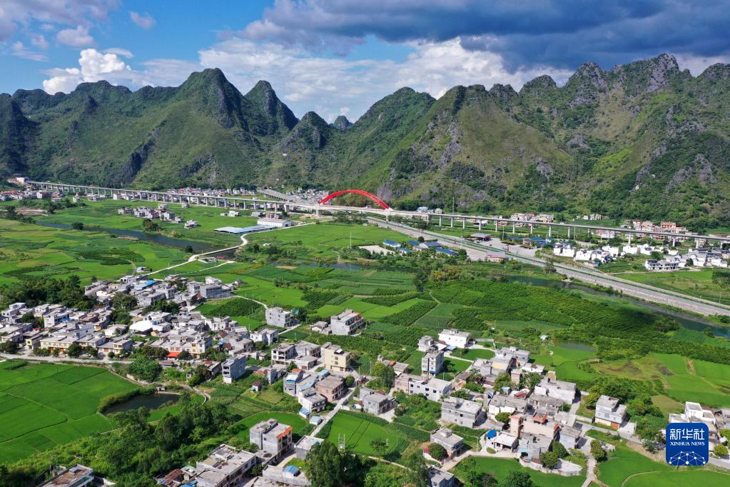 这是广西都安瑶族自治县高岭镇境内的乡村风貌(2021年8月31日摄,无人机照片)。近年来,广西壮族自治区生态文明建设成果喜人,八桂大地一年四季生机盎然,山川处处景象宜人。新华社记者 陆波岸 摄