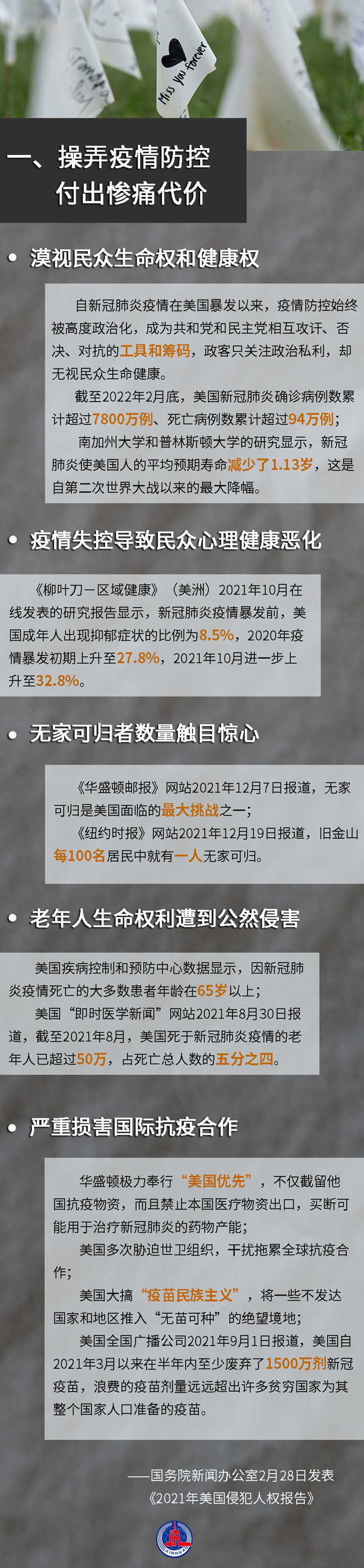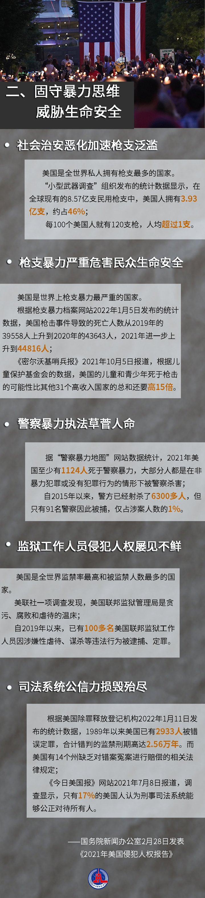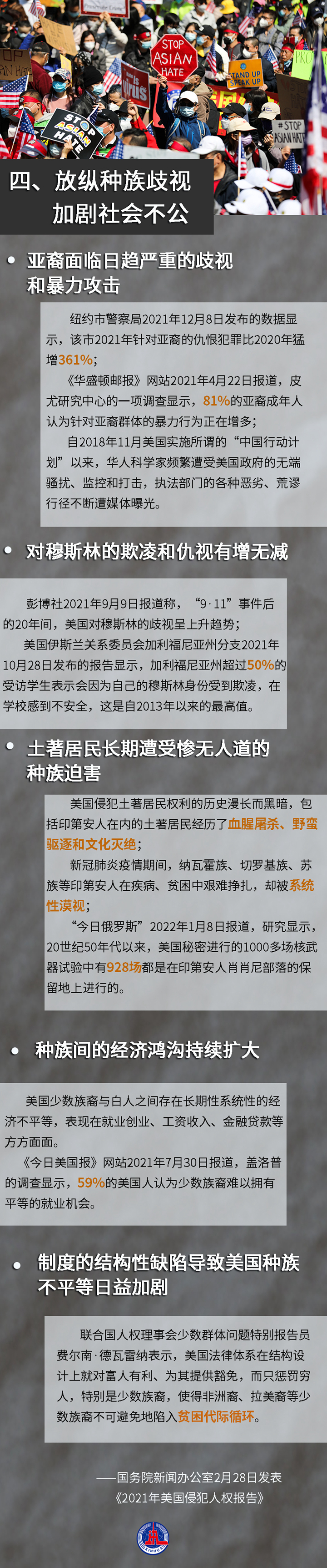 国务院新闻办公室发表《2021年美国侵犯人权报告》