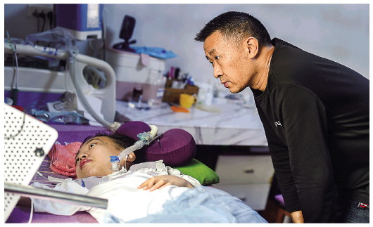热泪一直往下淌,床上铺了纸巾接着。又过了一会儿,她向记者说:“我最大的愿望是能坐起来,抱抱爸爸妈妈。”