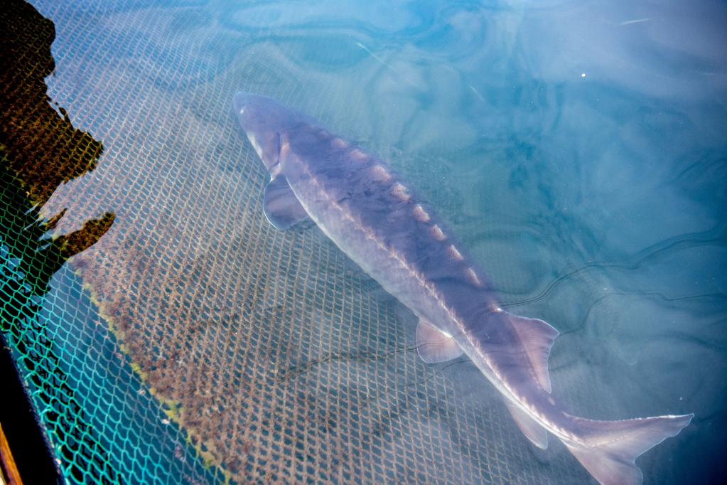 三峡库区珍稀鱼类驯养基地里的长江鲟。新华社记者唐奕 摄