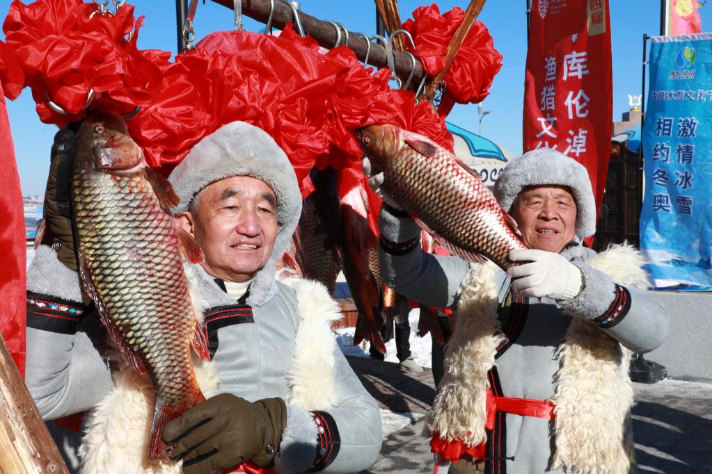 凿冰、下网、收网……随着冬捕队员将长长的大网缓缓拉出冰窟,一条条活鱼跃出湖面,库伦淖尔湖的冰面瞬间沸腾了。北京冬奥会期间,张家口市沽源县连续多日举办的“库伦淖尔湖冬捕节”,吸引了众多游客。