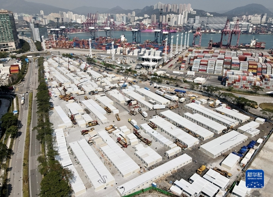 这是2月26日拍摄的香港青衣方舱医院项目工地(无人机照片)。新华社发