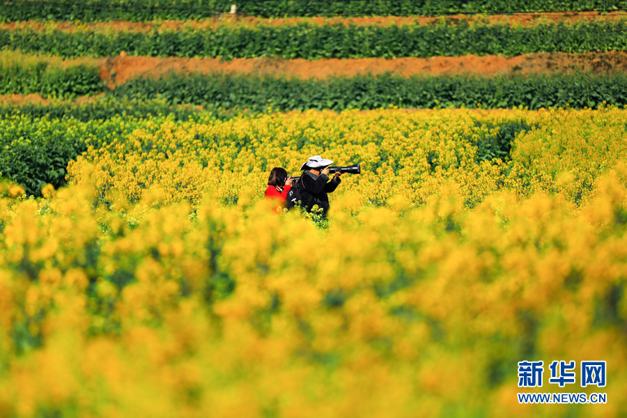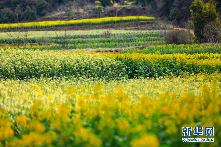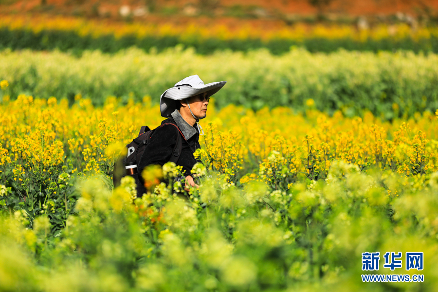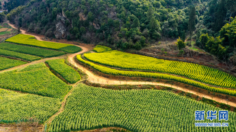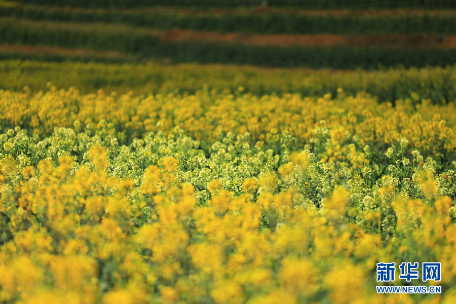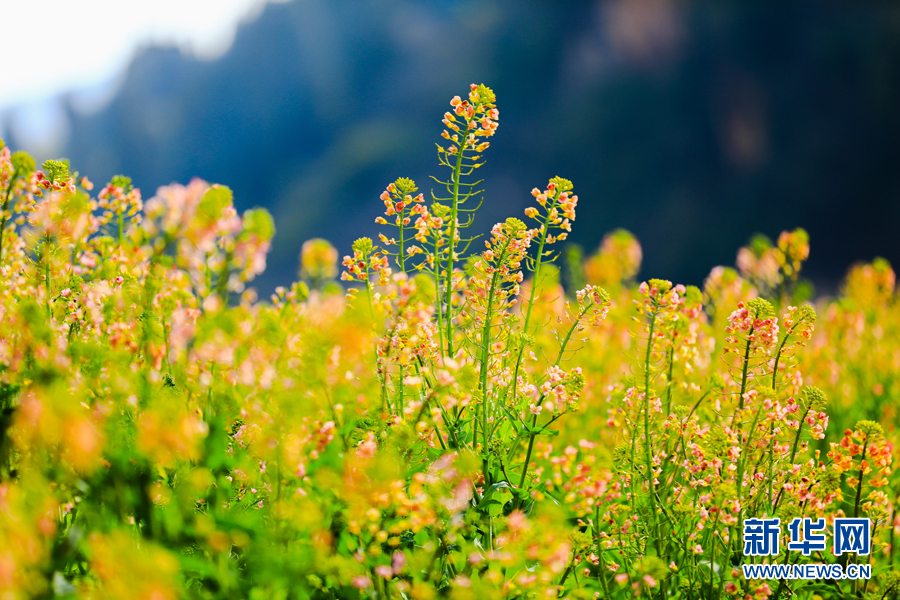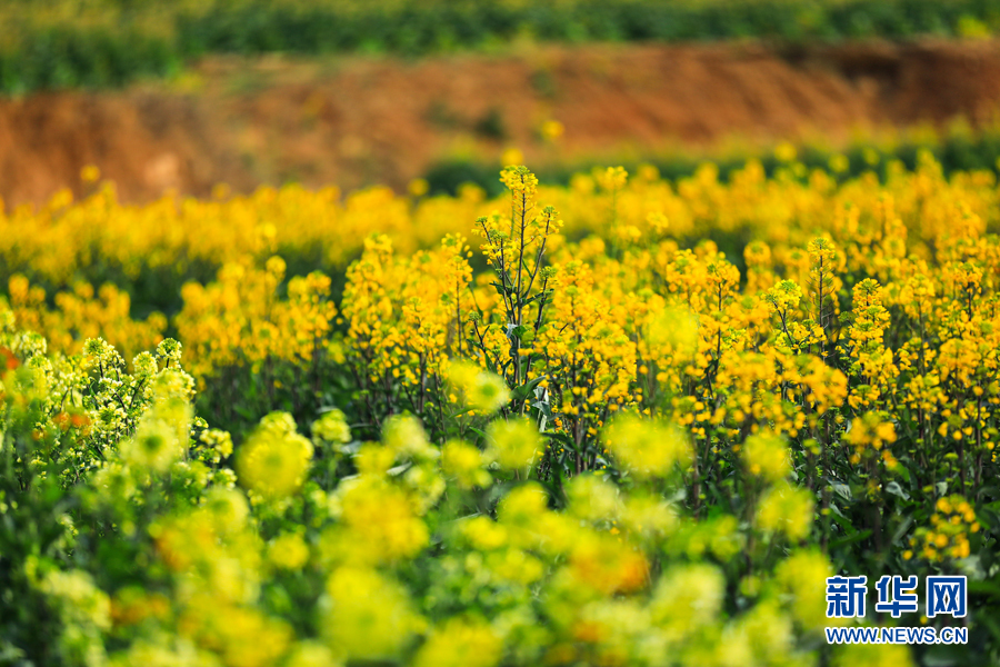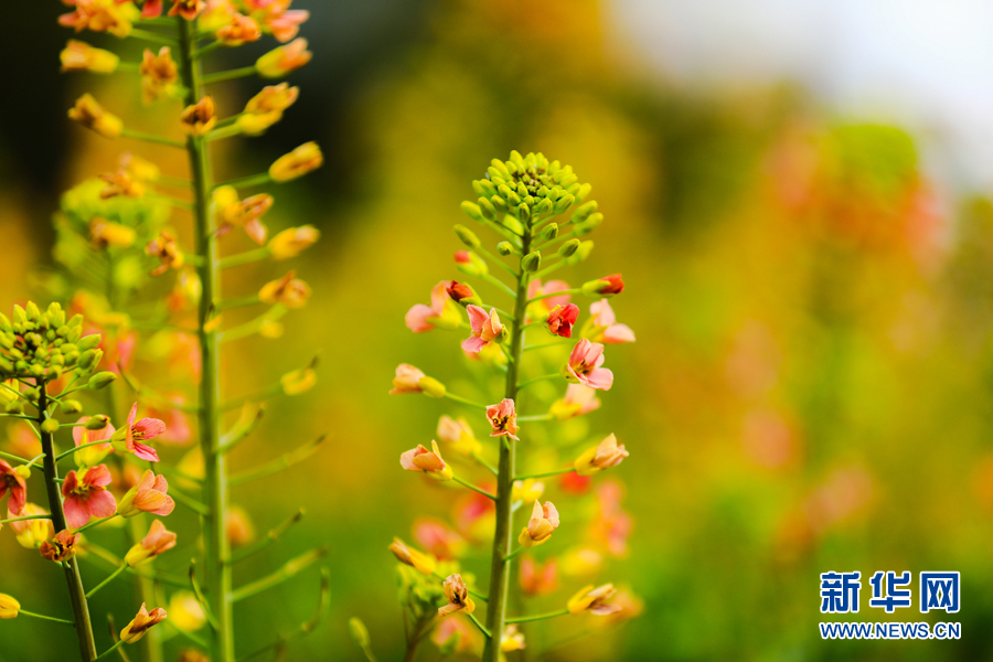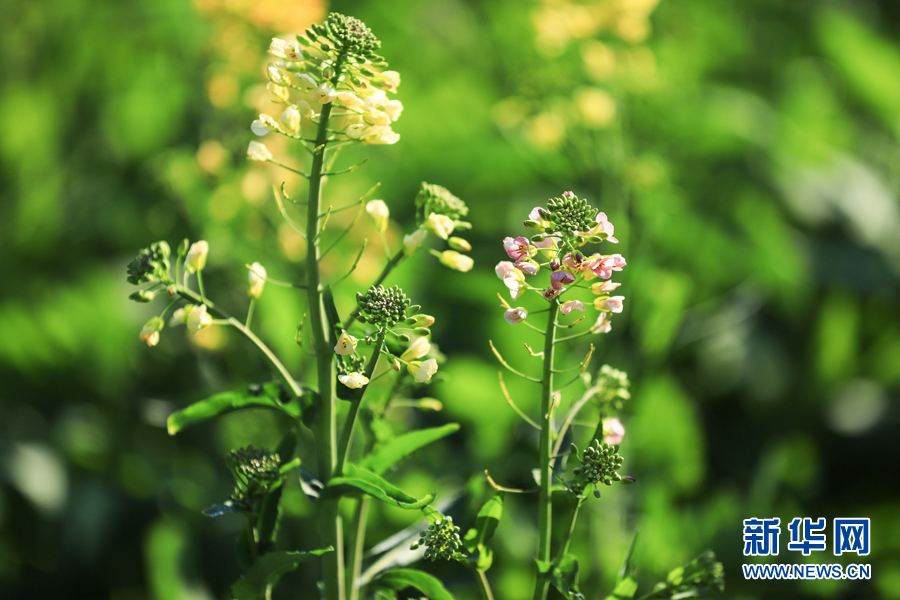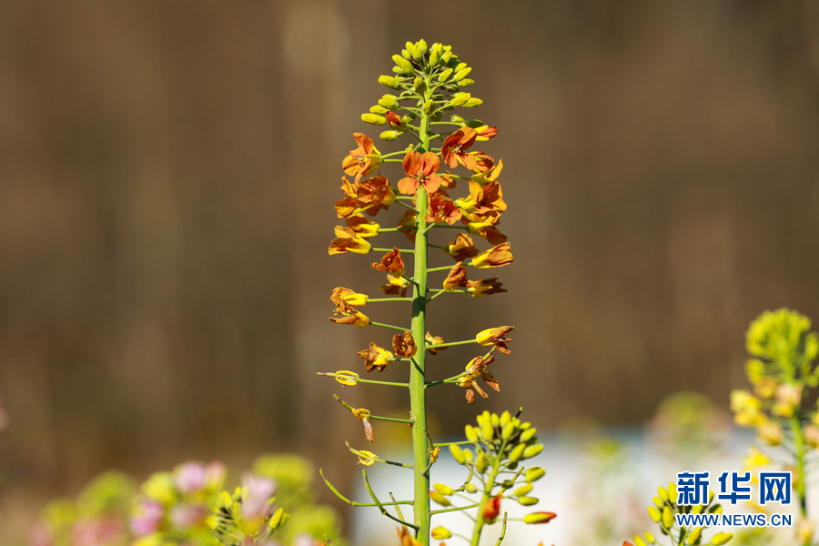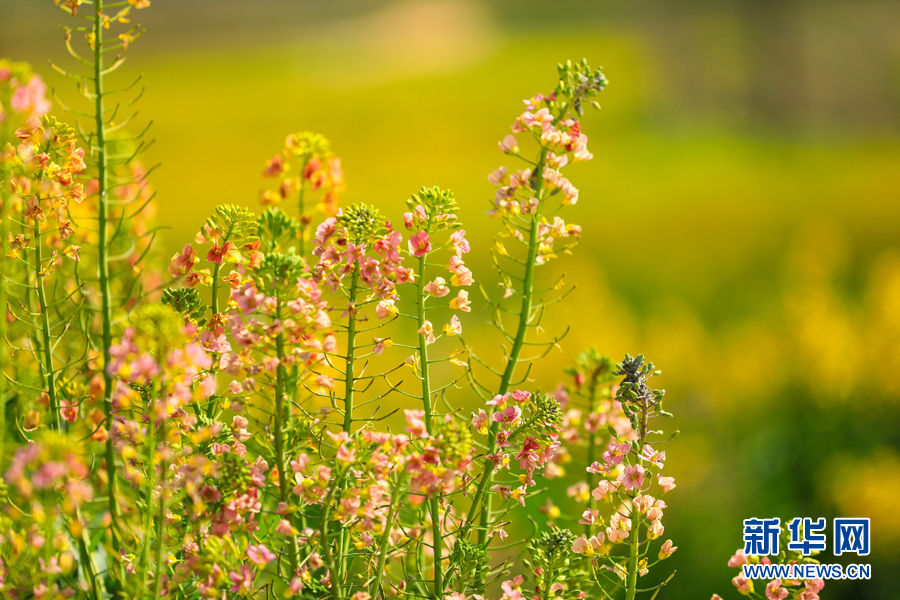 近日,昆明市安宁温泉街道田野里的大片油菜花跟随春天的脚步盛开了。在温泉街道的甸中小村,其中一些田块显得十分与众不同,油菜花枝顶端开出五彩缤纷的颜色,彩色油菜花在春风中摇曳生姿。新华网发(安宁市融媒体中心供图)